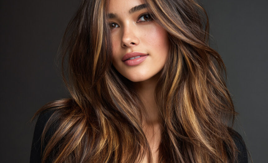 Warm caramel tones painted over dark brown strands create a sweet, glowing contrast. The color melts beautifully from roots to ends, giving your hair instant shine. It’s subtle yet eye-catching, perfect for anyone wanting a gentle upgrade. This look brings out your skin’s warmth and adds dimension with every flip.