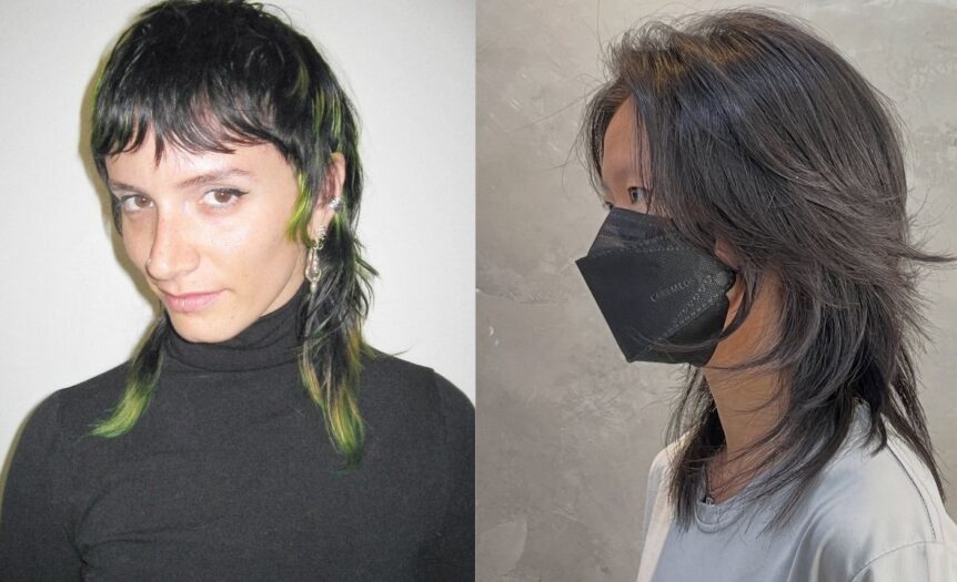 Bold Black Mullet with Electric Green Accents