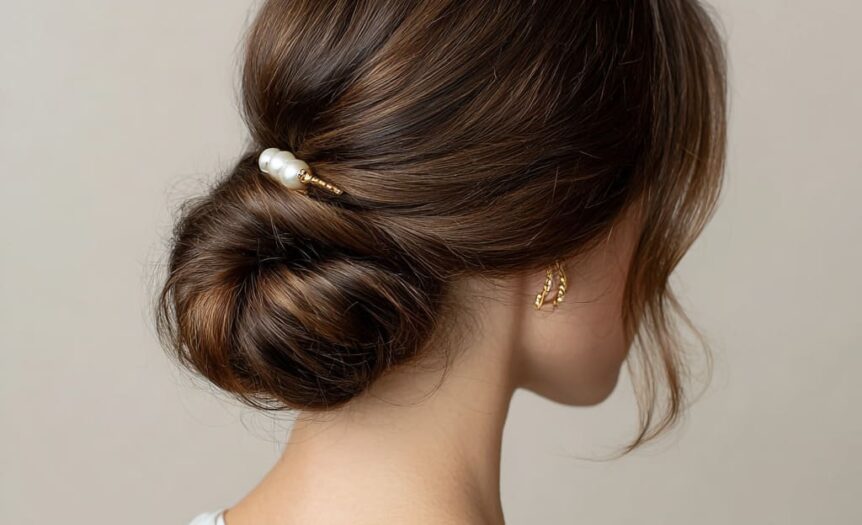 Few styles feel as elegant as a low chignon bun. It’s graceful, neat, and radiates that “I woke up in Paris” vibe. Perfect for workdays or romantic dinners, it strikes a balance between polished and relaxed. Finish with a pearl pin or gold clip for a subtle touch of luxury.