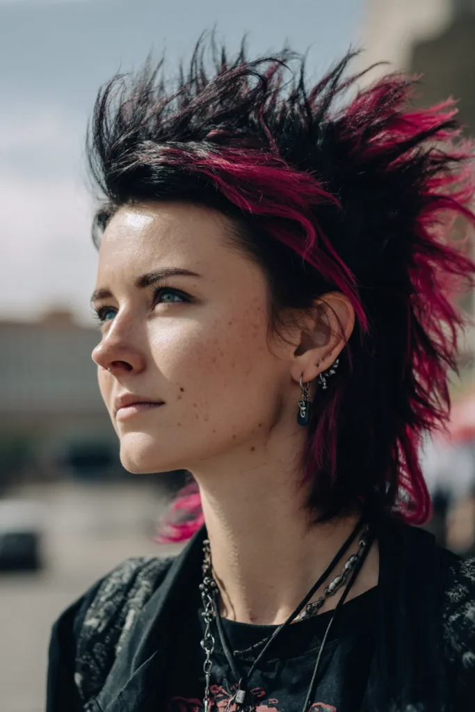 One of my favorite things about punk hairstyles is how much freedom you have with color. Bold shades like neon pink, electric blue, and vibrant green instantly amplify the drama of any cut. These colors work especially well with sharp layers and edgy shapes because they highlight every detail.