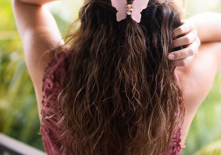 Softly-glossed wet beach waves create a fresh, summer-ready look that feels effortless yet polished. The defined waves combined with a butterfly clip add a playful, Y2K-inspired accent while keeping the hair controlled and stylish. This hairstyle works best for medium to long hair and instantly elevates casual outfits.