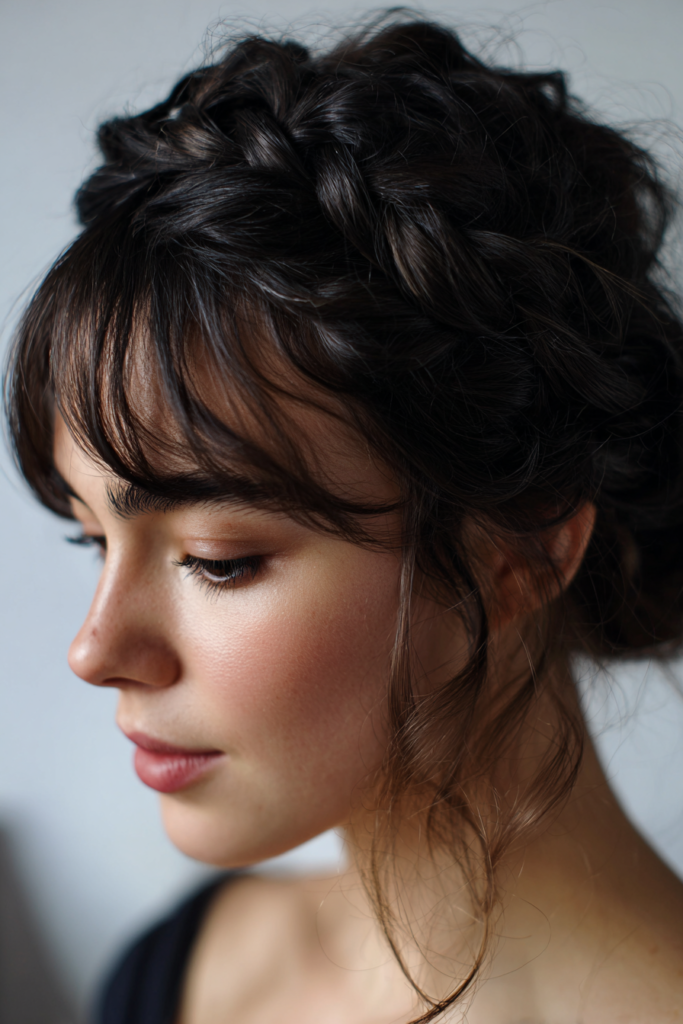 I am completely in love with how this hairstyle makes me feel like a total queen without needing a literal crown. It is a fantastic choice for those hot summer evenings when you want to look polished but need your hair completely off your neck to stay cool. The combination of the structured braid and the soft wispy bangs is so flattering because it balances a bold forehead with a gentle feminine frame. If you have an outdoor wedding or a fancy date night on the calendar this is the elegant solution that will actually stay put until the stars come out.