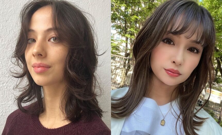 I really feel like this style is a total winner for anyone who wants to look put together with zero effort. Those curtain-style bangs frame the face so perfectly, and they’re great for hiding any forehead insecurities. It gives off such a cool girl aesthetic that works for a coffee date or a night out. Plus, the medium length is super manageable while still being long enough to throw into a cute clip when you’re in a rush.
