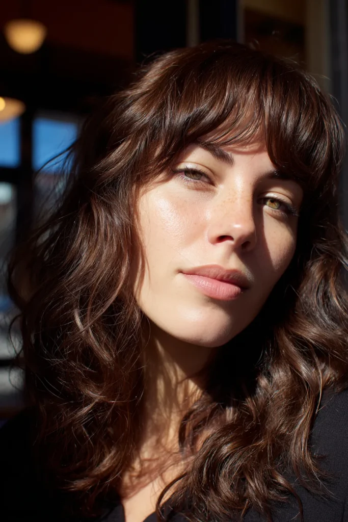 Effortless Chocolate Waves with Piecey Bangs