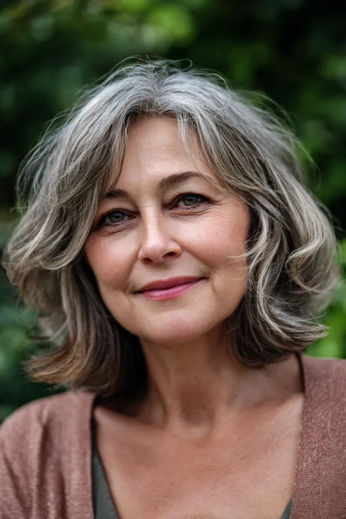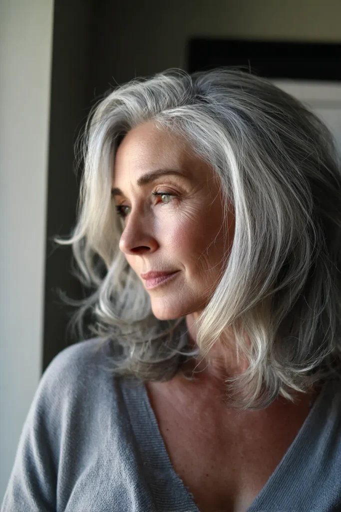 Some people think going gray means losing your style edge, but this look proves that theory completely wrong. I’m convinced that the side-swept front section is the ultimate trick for softening features and adding a bit of mystery. It feels incredibly chic and expensive without needing a ton of styling products to hold its shape. You can easily rock this at a fancy dinner or while running errands and still feel like the most stylish person in the room.