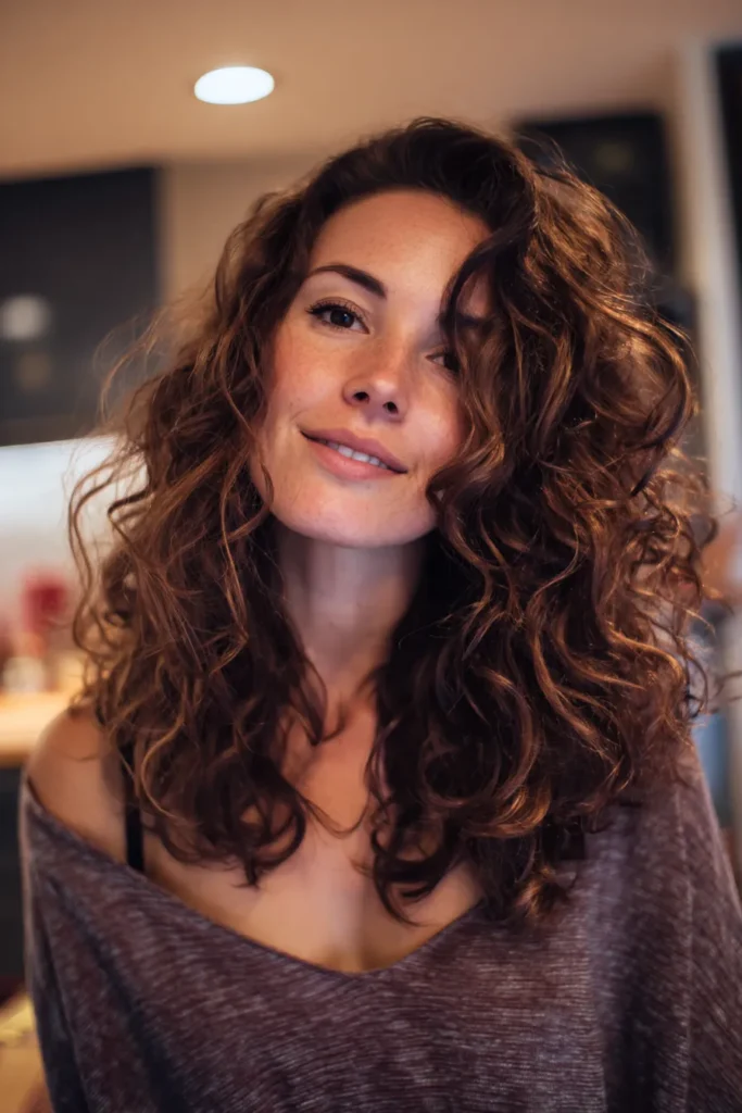 If you’re into embracing your natural texture, then this big curly look is a total dream come true. I love how the side part adds so much height and glamour without needing any complicated styling tools. It is such a flattering way to frame your face and show off those cheekbones while keeping the vibe completely effortless. It definitely gives off that confident and fun energy that makes any outfit look ten times better.
