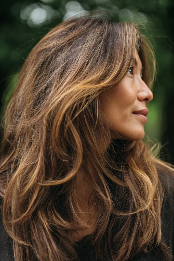 This style feels polished but still fun and modern. The layers help show off the highlights, especially when styled with a bit of texture.
