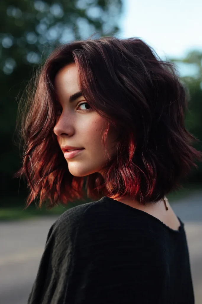 I love this because it’s a daring mix that doesn’t feel overwhelming at all. If you’re into a look that stands out in a crowd, these plum tones are such a flattering way to experiment with color. I love how the dark base keeps it grounded while the vibrant ends catch the light and frame the face so beautifully. It is a fantastic option for someone who wants to switch up their brown hair with a little bit of a “cool girl” twist.