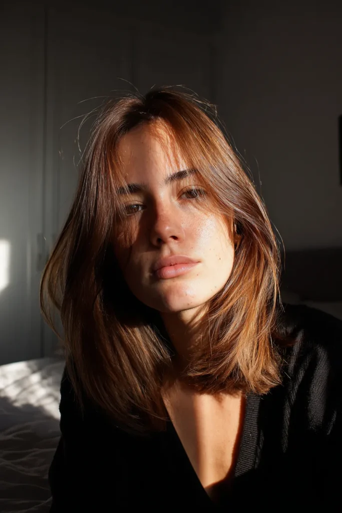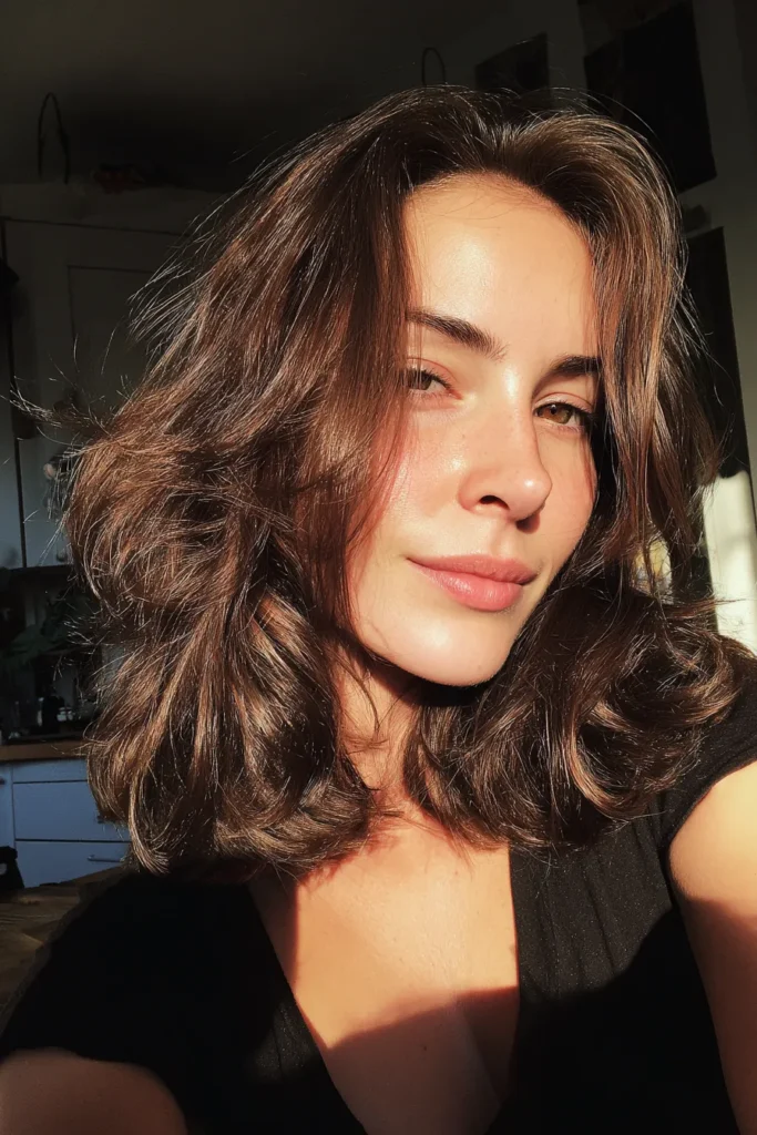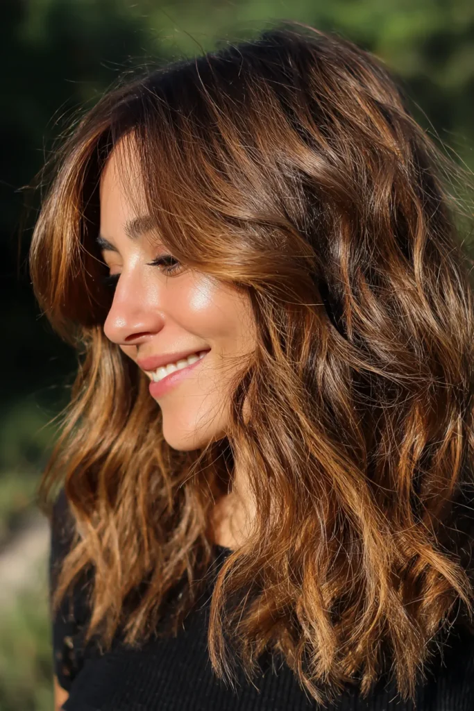 If you prefer something bolder, rich brunette tones or warm caramel highlights can instantly refresh the style. These shades bring out movement in layers and make even simple cuts look more styled and intentional.