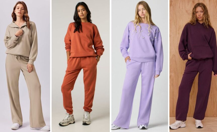 Bottom: Loose rose joggers flowing easily through casual plans.